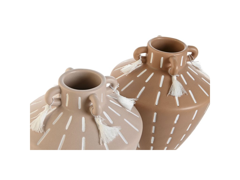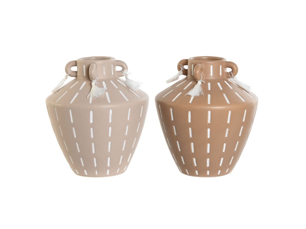 Ha szeretnél egy kis eredetiséget varázsolni otthonodba, megteheted a Váza Home ESPRIT Gesztenye kerámia gyarmati stílusú bojttal 15,5 x 15,5 x 17,1 cm (2 db) .