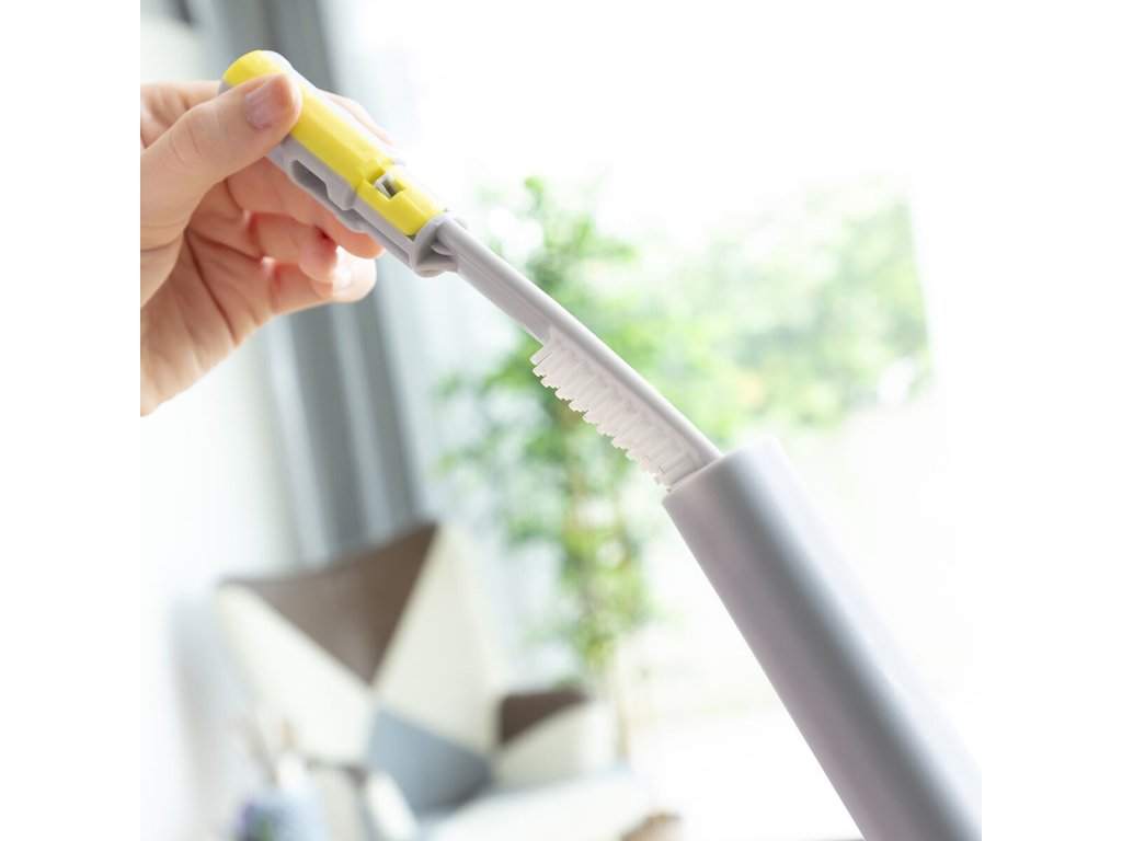 - Könnyű tisztítás: Beépített kefe a nyélben