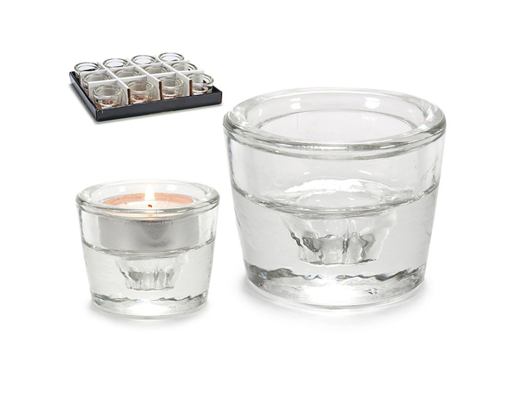 Gyertyatartó átlátszó üveg (6 x 4,3 x 6 cm) (12 db)