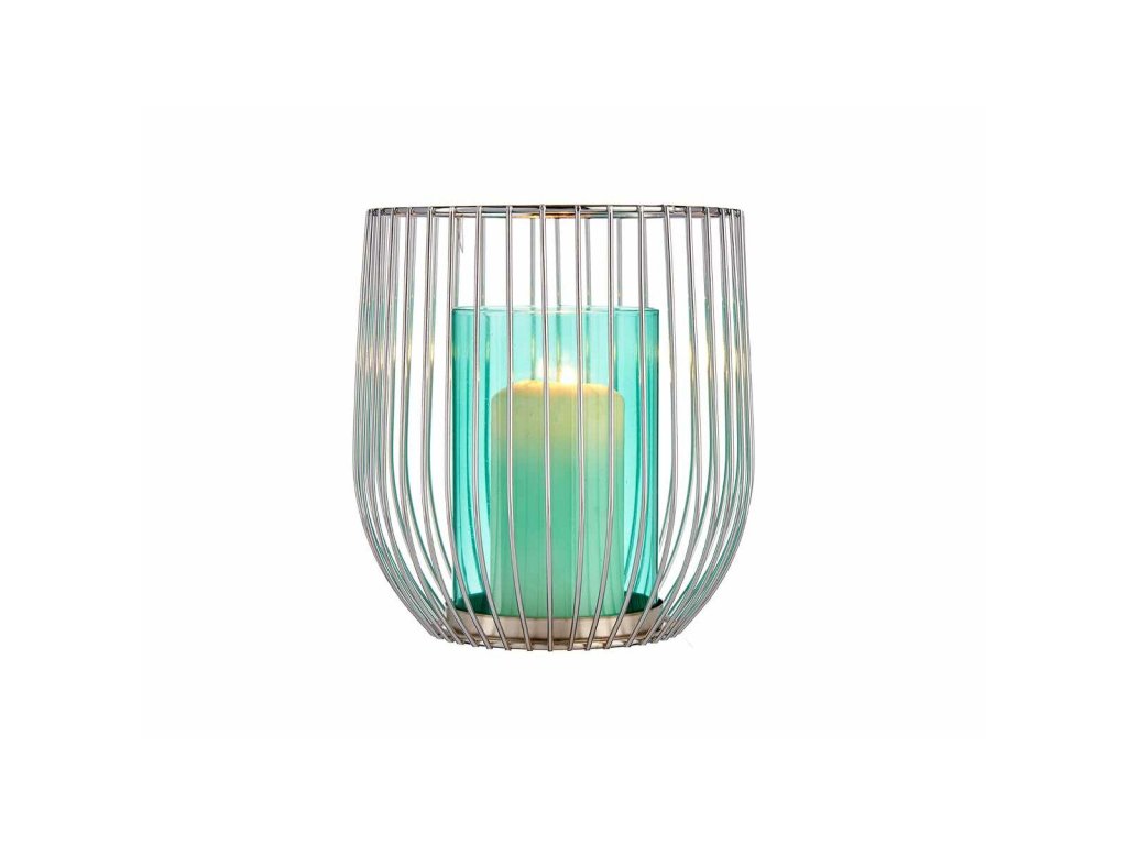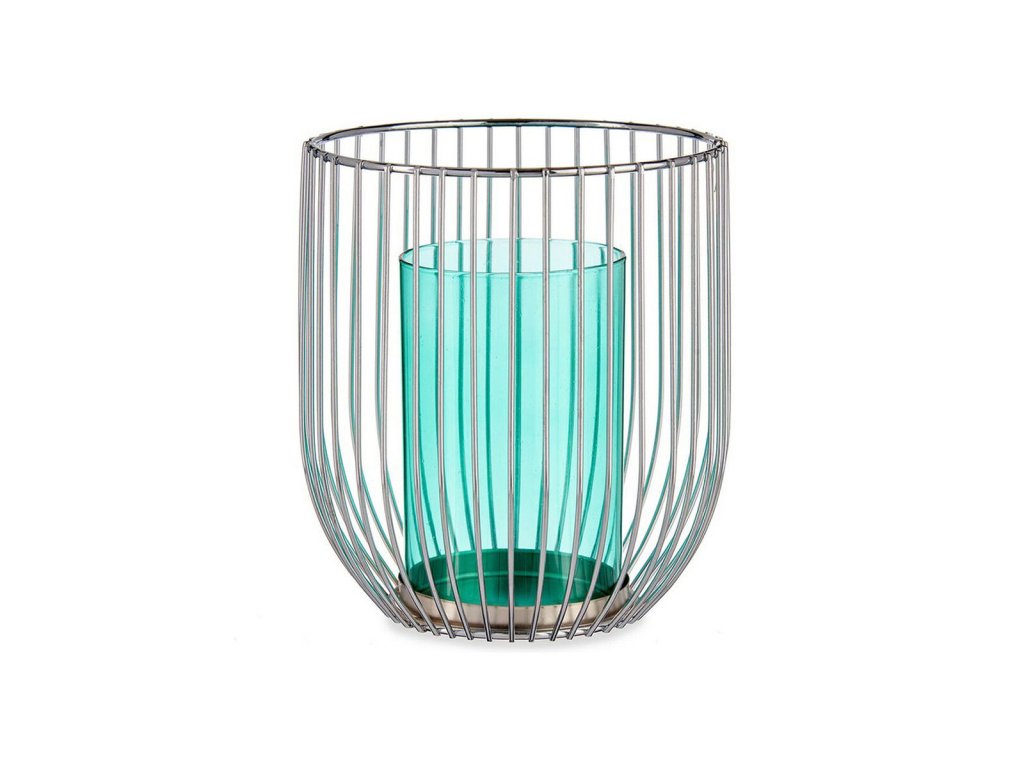 2665521 1 svietnik striebristy modra klietka kov sklo 15 x 17 x 15 cm