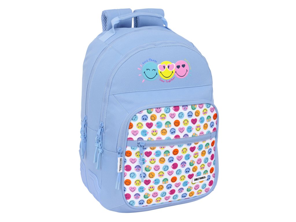 Smiley Joyful iskolai hátizsák kék tarka (32 x 42 x 15 cm)