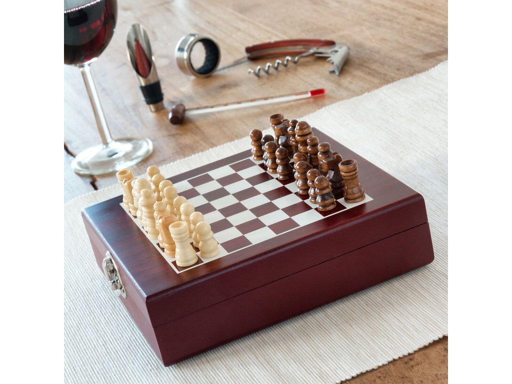 Az eredeti dizájn és a praktikum az oka annak, hogy szép ajándék lehet. Nagyszerű és praktikus ünnepségekre és bulikra, mivel sakkot és komplett készletet is tartalmaz boros kiegészítők .