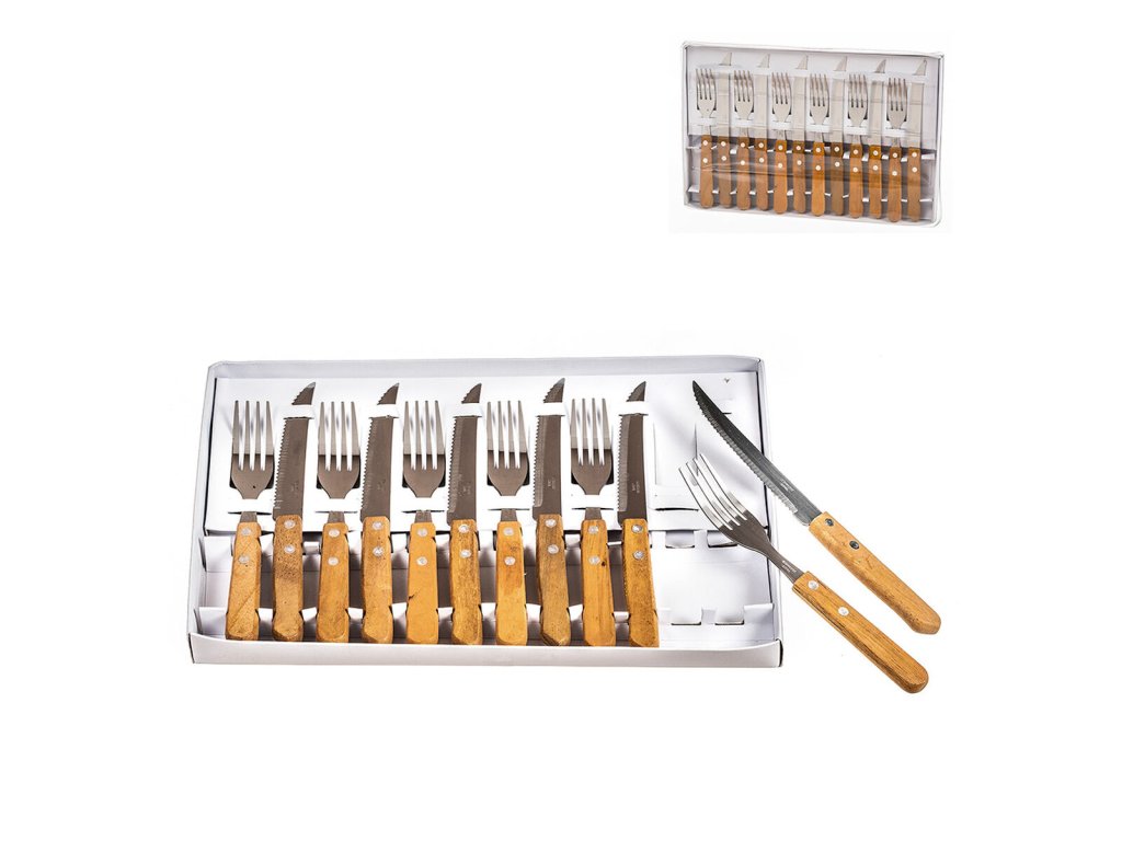 Steak evőeszközkészlet Kozina Wood Silver Natural (12 db)
