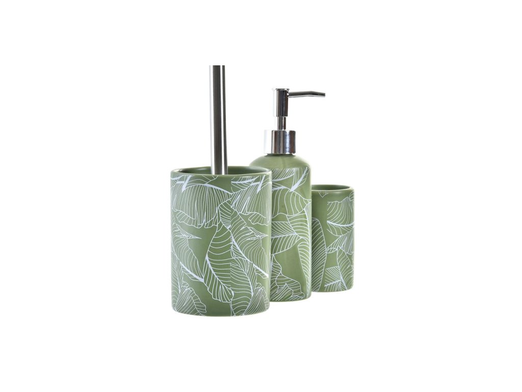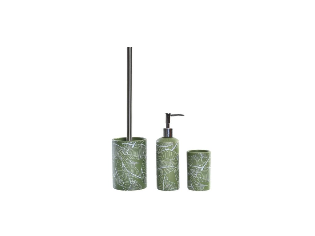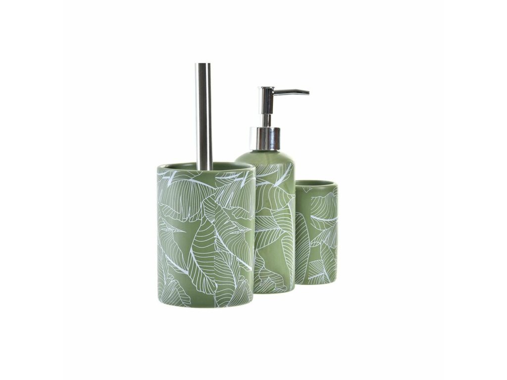 Fürdőszoba-kiegészítő készlet DKD Home Decor Plant leaf PP Dolomit Green (3 db)