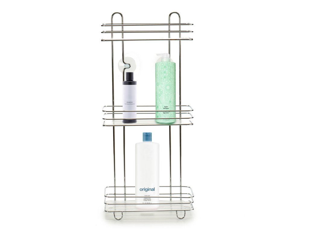 3175711 policka do kupelne kov plast strieborna transparentna 3 urovne 27 x 60 x 14 cm
