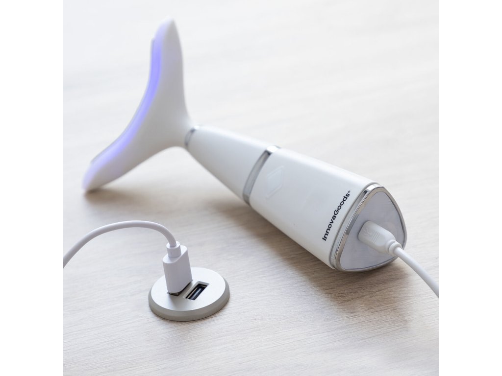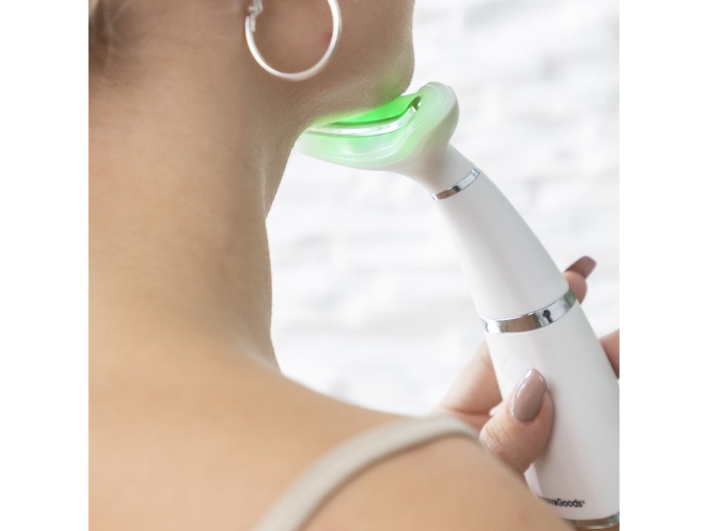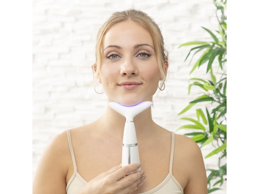 Dupla állcsökkentő fototerápiával, hőterápiával és vibrációval, ideális a bőr állapotának és megjelenésének (textúra, hidratálás és feszesség) javítására, ezáltal sokkal fiatalabb és ragyogóbb megjelenést biztosít. Ergonómikus és többcélú kialakítása azt jelenti, hogy a test bármely részén használható, így alkalmas a nyakra, arcra, kézre, lábakra stb. Hő (termoterápia), vibrációs terápia (6000 ford./percig) és fényterápia (kék, zöld és piros LED fény) funkciója van. Igényének és bőrtípusának (fiatal bőr, középkorú bőr vagy érett bőr) függvényében 3 féle masszázs (megelőző, rendszeres és korrekciós) elvégzését teszi lehetővé. Amellett, hogy feszesíti a nyakat és csökkenti a kettős állát, stimulálja az akupunktúrás pontokat és elősegíti a sejtregenerációt, így lassítja a bőrsejtek öregedését. Egy új kezelési módszer LED-lámpákkal serkenti a kollagéntermelést és csökkenti a napsugárzás okozta károkat és a striákat. Ez a többfunkciós 3 az 1-ben fiatalító masszírozó hordozható, könnyű, könnyen használható, hordozható és tárolható. Mivel újratölthető, kényelmesen, bárhol használhatja, kábelek vagy dugók nélkül. Tartalmaz egy USB-mikro USB-kábelt, és könnyen tisztítható száraz ruhával.- Anyaga: ABS