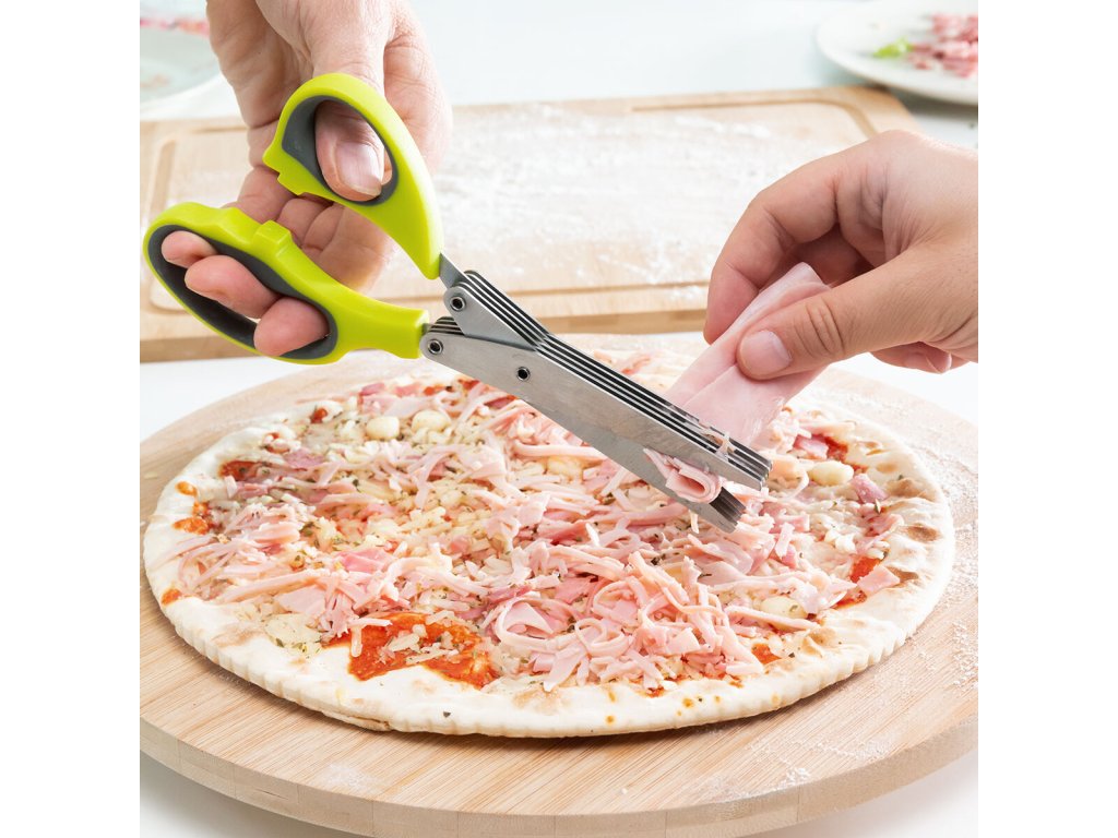 Az InnovaGoods azért van itt, hogy könnyebben és szórakoztatóbb módon főzzön, ezért olyan újdonságokat kínál a konyhája számára, mint az InnovaGoods Fivessor 5 az 1-ben többpengés konyhai olló ! Fedezze fel a kiváló minőségű termékek széles választékát, amelyek funkcionalitásukkal, hatékonyságukkal és innovatív kialakításukkal tűnnek ki! Praktikus többélű olló , amellyel időt és energiát takaríthat meg, mert vele sokkal hatékonyabban vágja az ételt, mint korábban. Öt pár száruk van, így mindig öt darabot vágsz egyszerre. Ezen kívül ez az univerzális olló fontos dokumentumok aprítására vagy különféle alkotásokhoz is használható.