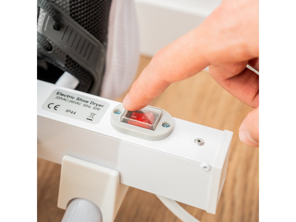 - Be-/kikapcsoló gomb jelzőfénnyel: ez az elektromos cipőszárító segít a cipőink egyszerű és hatékony szárításában. Ez a csizmamelegítő nagyon könnyen használható, mivel egyetlen be-/kikapcsoló gombbal rendelkezik egy visszajelző lámpával. Vízálló (IPX2 szint).