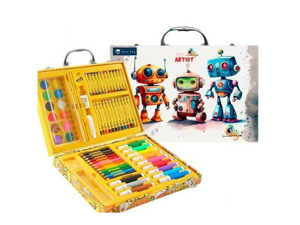3293971 sada na kreslenie a malovanie v kufriku roymart robots viacfarebna 68 ks