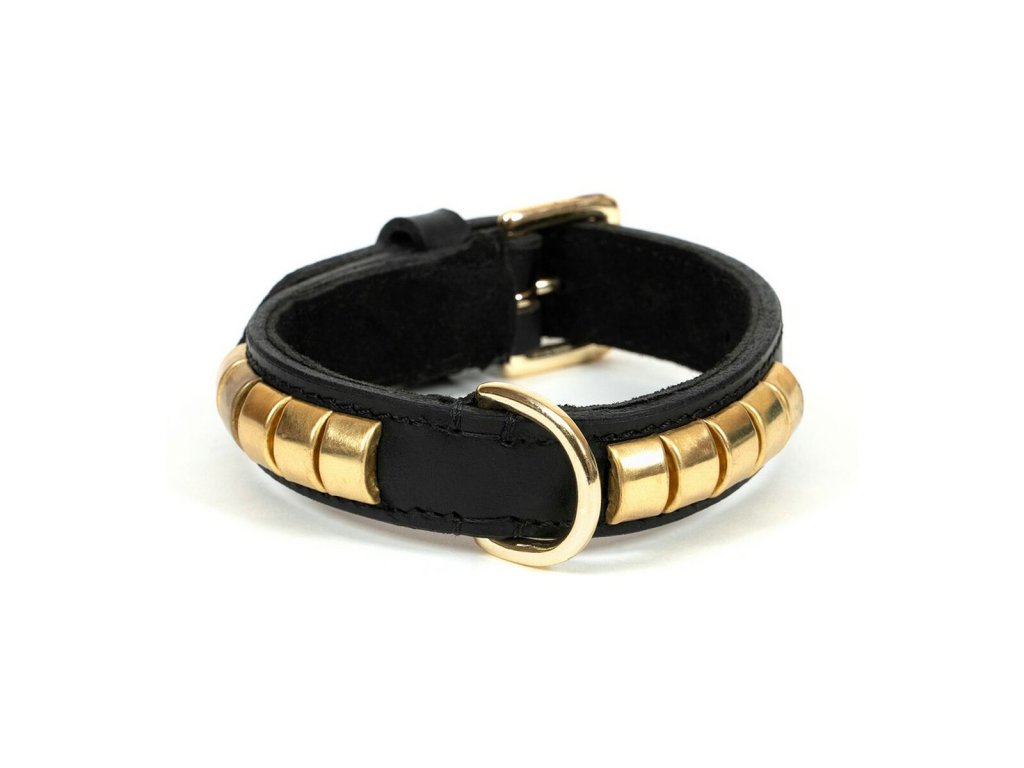 Bőr nyakörv Gloria Duna Black Gold (55 x 2,5 cm)