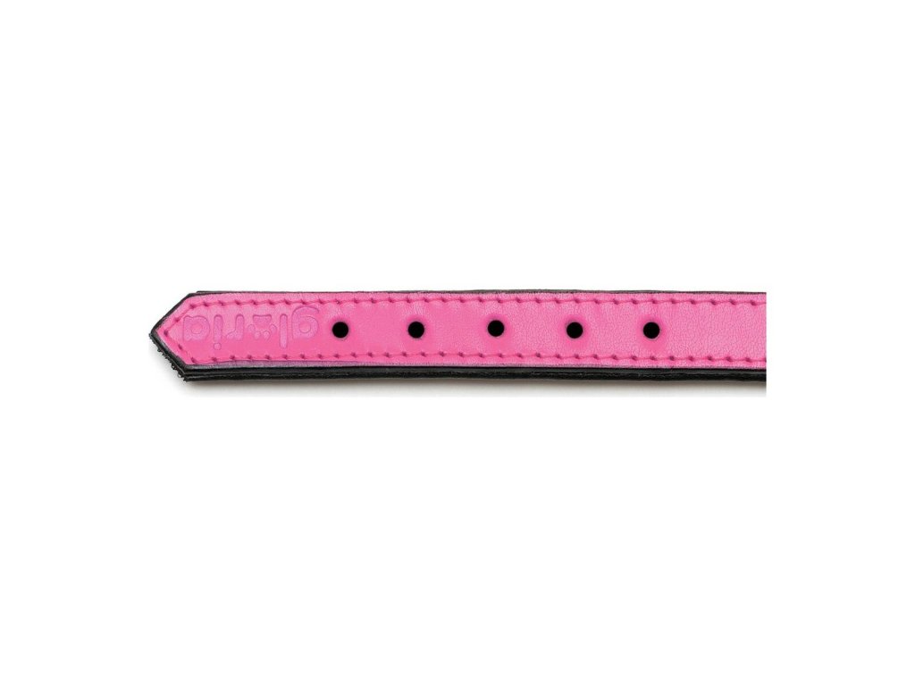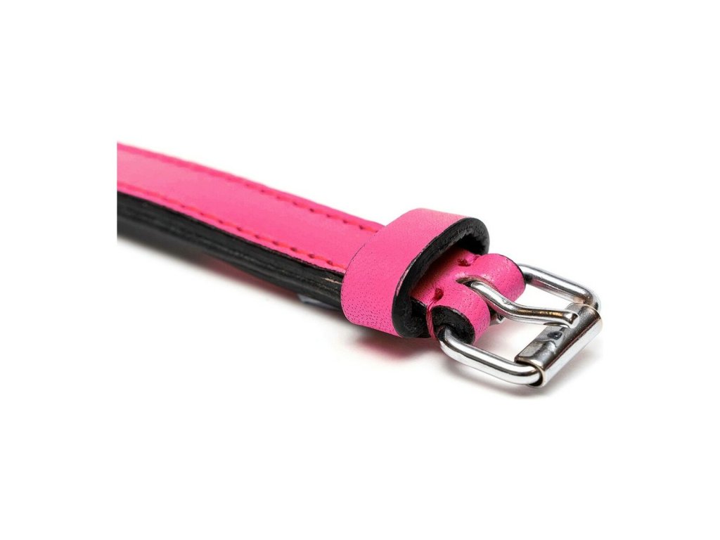 Bőr nyakörv Gloria Stitched Fukszia (30 x 1,5 cm)
